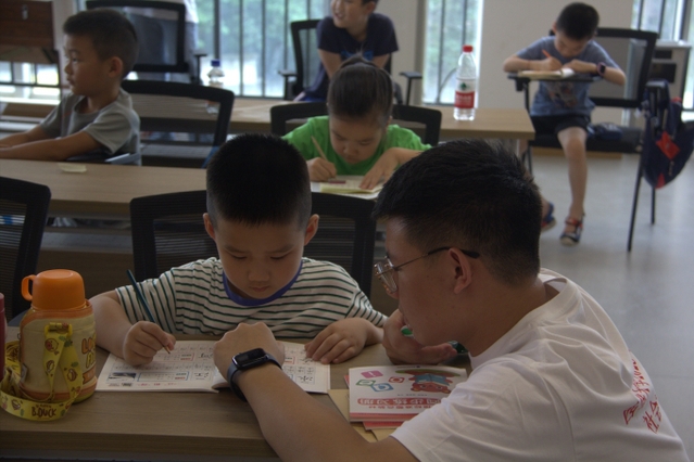 在作业辅导环节,大家首先收集家长的意见,对小朋友们的学习情况进行了大致的了解,并对有特殊情况的同学进行重点关注。小朋友们在完成作业的过程中会积极地向队员们提问,队员也会对小朋友们提出的问题一一耐心解答,在讲解知识的同时也会向他们传授更好的解题方法。