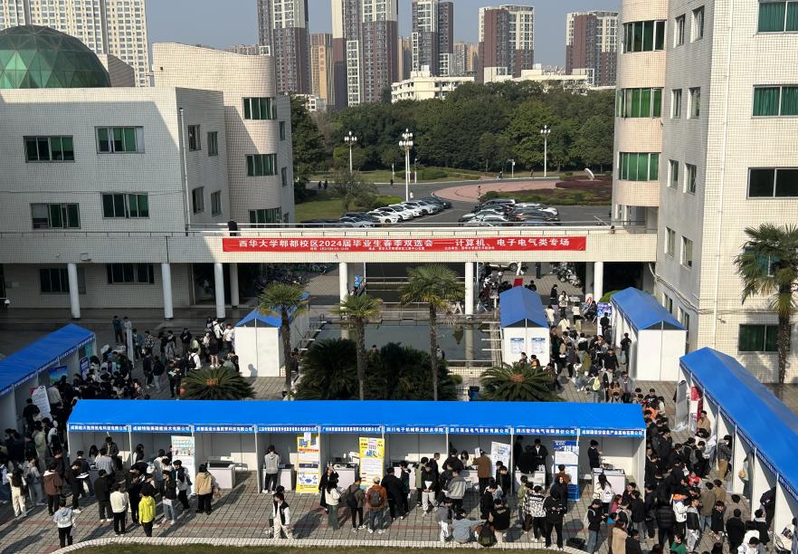3月21日上午,西华大学2024届毕业生春季计算机、电子电气类专场双选会在三教中心花园广场举行,由西华大学招生与就业处主办,电气与电子信息学院和计算机与软件工程学院承办。此次双选会共有67余家用人单位现场参会招聘,学院2024届毕业生到场与用人单位交流接洽,积极投递简历,现场气氛热烈。