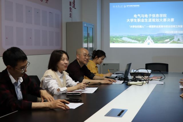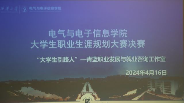 为了更好地引导大学生树立生涯发展目标,提升就业竞争力。4月16日,电气与电子信息学院在6A-320成功举办了大学生职业生涯规划大赛决赛。本次大赛由学院“大学引路人”——青蓝职业发展与就业咨询工作室承办。院党委副书记郭忠林、辅导员刘秀丽、李德友、蓝琼担任决赛评委。