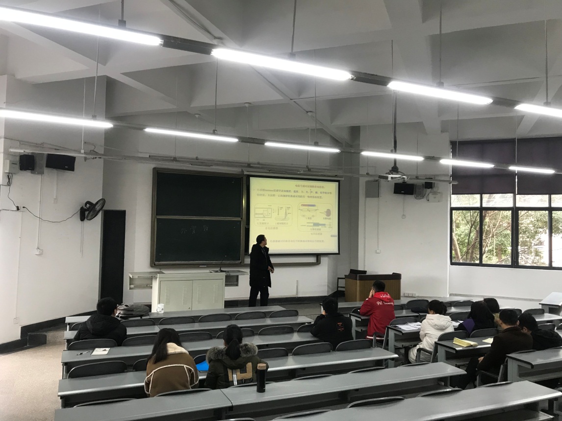 在最后的交流讨论阶段,邬祖全博士和同学们进行了良好的互动,通过本次学术报告,同学们对湿度传感器有了进一步地了解,为今后顺利开展良好的学术工作奠定了良好基础。