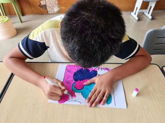 活动中期,实践团队员们和小朋友们一起举行了画画大赛活动。画画可以让小朋友们自由地表达自己的情感、思想和想象,让他们通过画笔和色彩,将自己的内心世界展现出来,这种表达过程对于他们的情感发展和自我认知都非常有帮助。