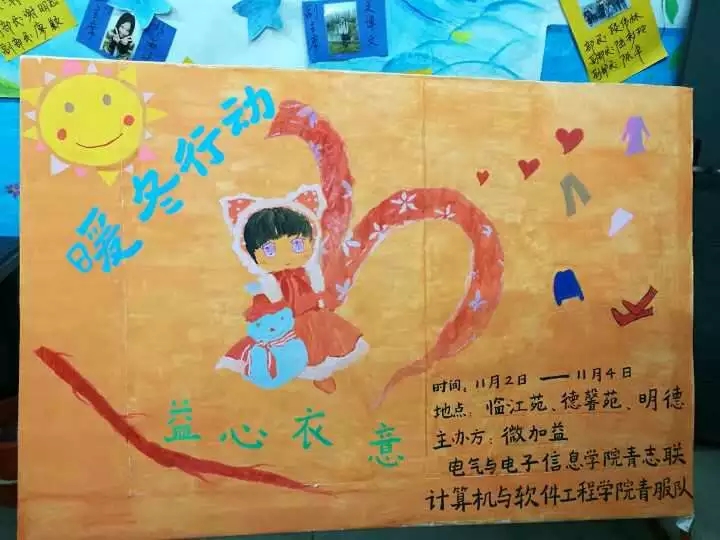 2016112日至4日,电气与电子信息学院联合计算机与软件工程学院、及微加益团队在西华大学校内展开了为期三天的暖冬行动。此次活动主要是通过收集大家不穿的旧衣物去为那些贫困山区的孩子送去一些温暖。