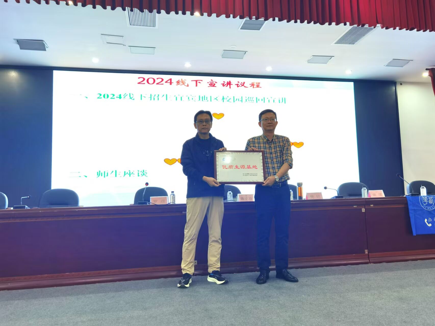 授牌仪式结束后,陈立功老师、罗彦老师向在座学生进行了招生宣传,介绍了西华大学发展史、学科优势、科研成果以及丰富多彩的校园文化活动,对电气与电子信息学院办学历史、师资、就业和校友等情况做了详细的介绍,现场对同学们提出的问题进行了详细的解答。