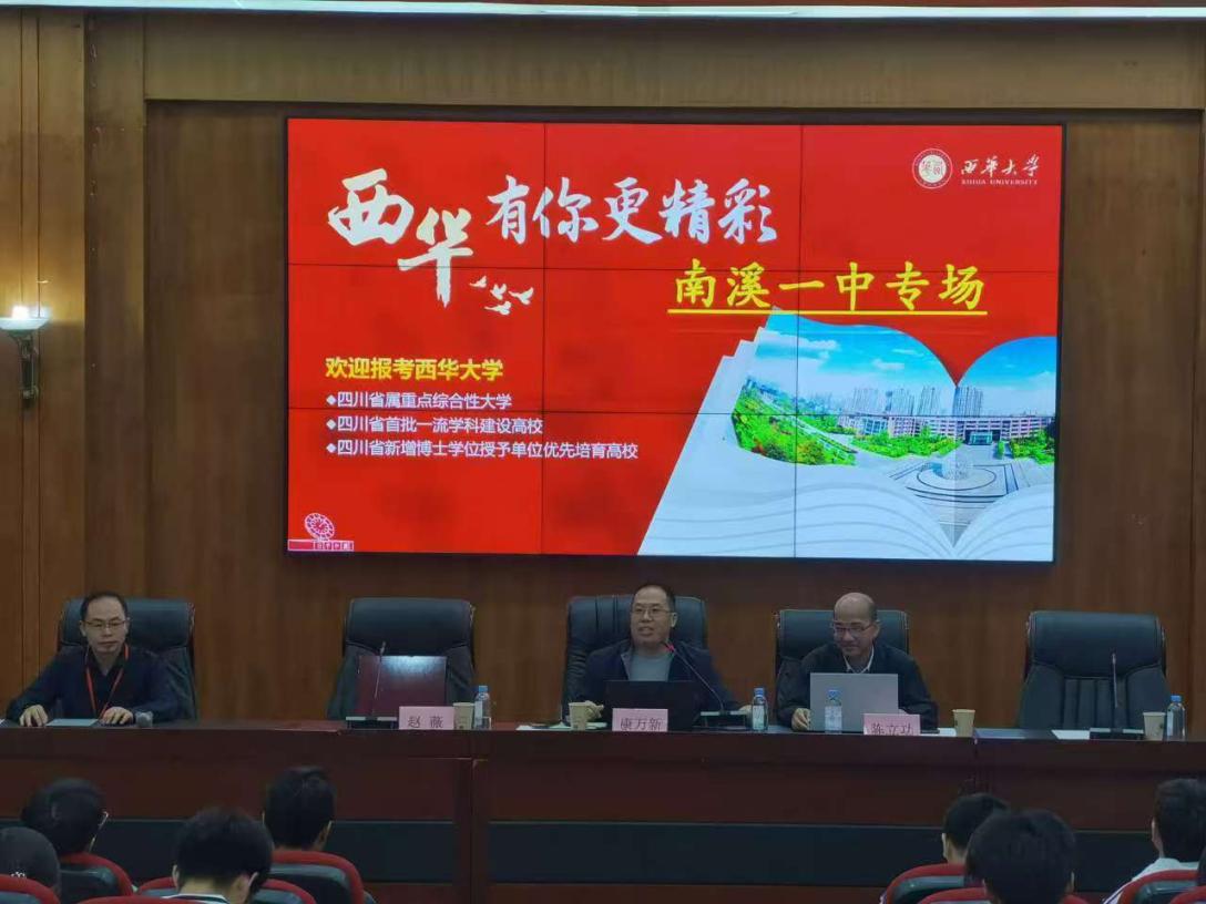 10月24日,电气与电子信息学院电工电子教学部康万新老师、电气工程系陈立功老师、专职辅导员赵薇老师一行赴南溪一中开展本科招生宣传活动。西华大学招生宣讲团受到南溪一中高正鑫书记、蒙仕云副校长热情接待。宣讲会由教务处彭正康主任主持,高三年级各班主任和学生代表共计200余人在奎峰讲堂参加了此次活动。