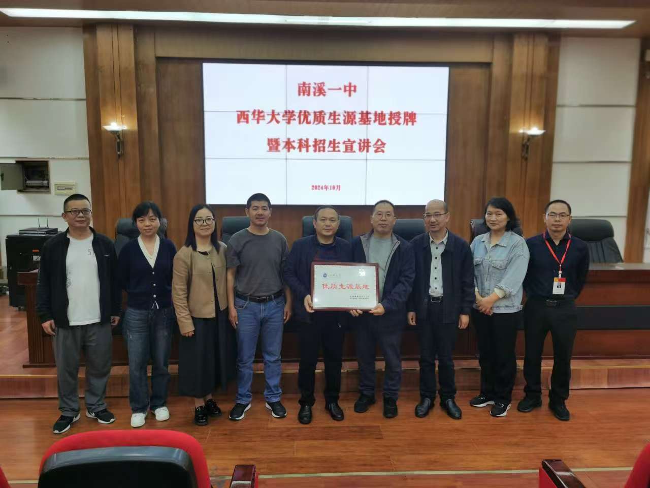 会前蒙校长参与了“南溪一中—西华大学优质生源基地”授牌仪式。彭主任回顾南溪一中悠久而辉煌的办学历史,用近年录取数据指出西华大学在南溪一中的招生人数呈逐年增长态势;赵薇老师也从在校生现状分析,表明南溪一中学子素质全面,在西华大学表现优异,两校有着相互支持、共同发展的坚实基础。