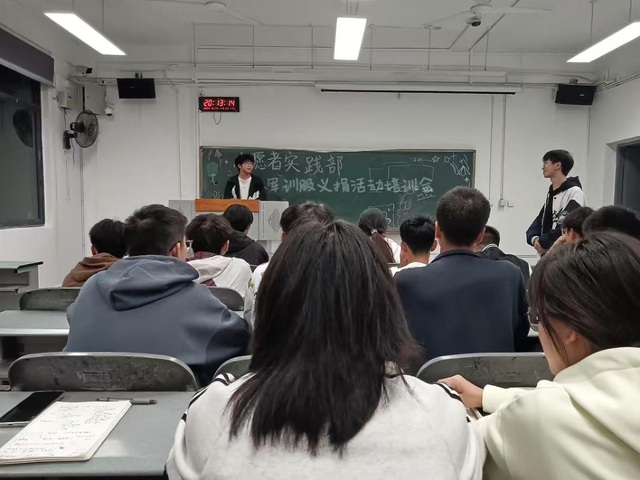 电气与电子信息学院团委学生会志愿者实践部于9月23日在6C-228,成功开展“军训服义捐活动”志愿者培训会议。团委学生会志愿者实践部全部学生干部参会,会议由志愿者实践部部长徐佳主持。