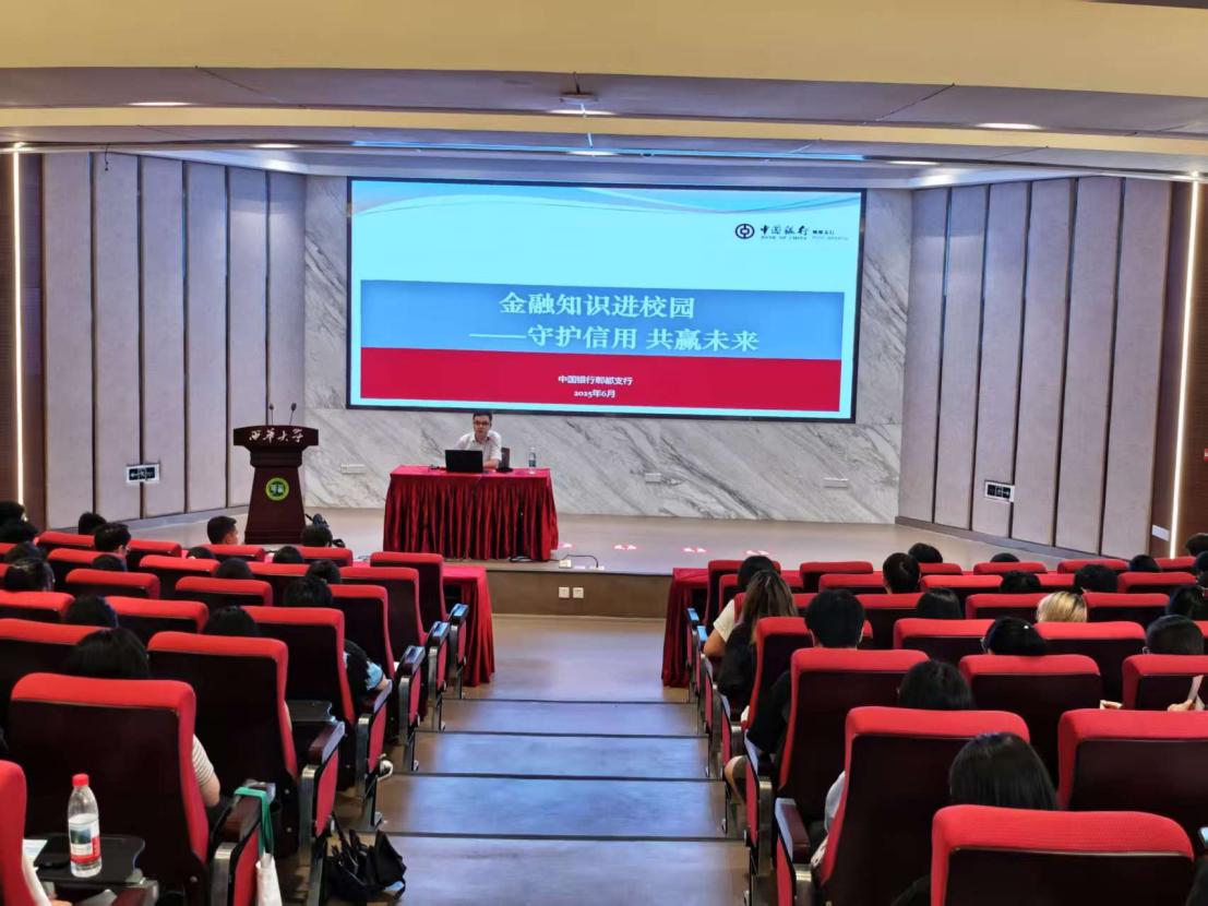 618日下午,我校邀请了中国银行郫都支行来校举办了《金融知识进校园——守护信用、共赢未来》专题讲座向学生讲解金融和征信知识,并在活动期间在校园设置国家助学贷款和征信知识宣传点,发放助学贷款宣传资料,通过活动学生受教育效果突出。