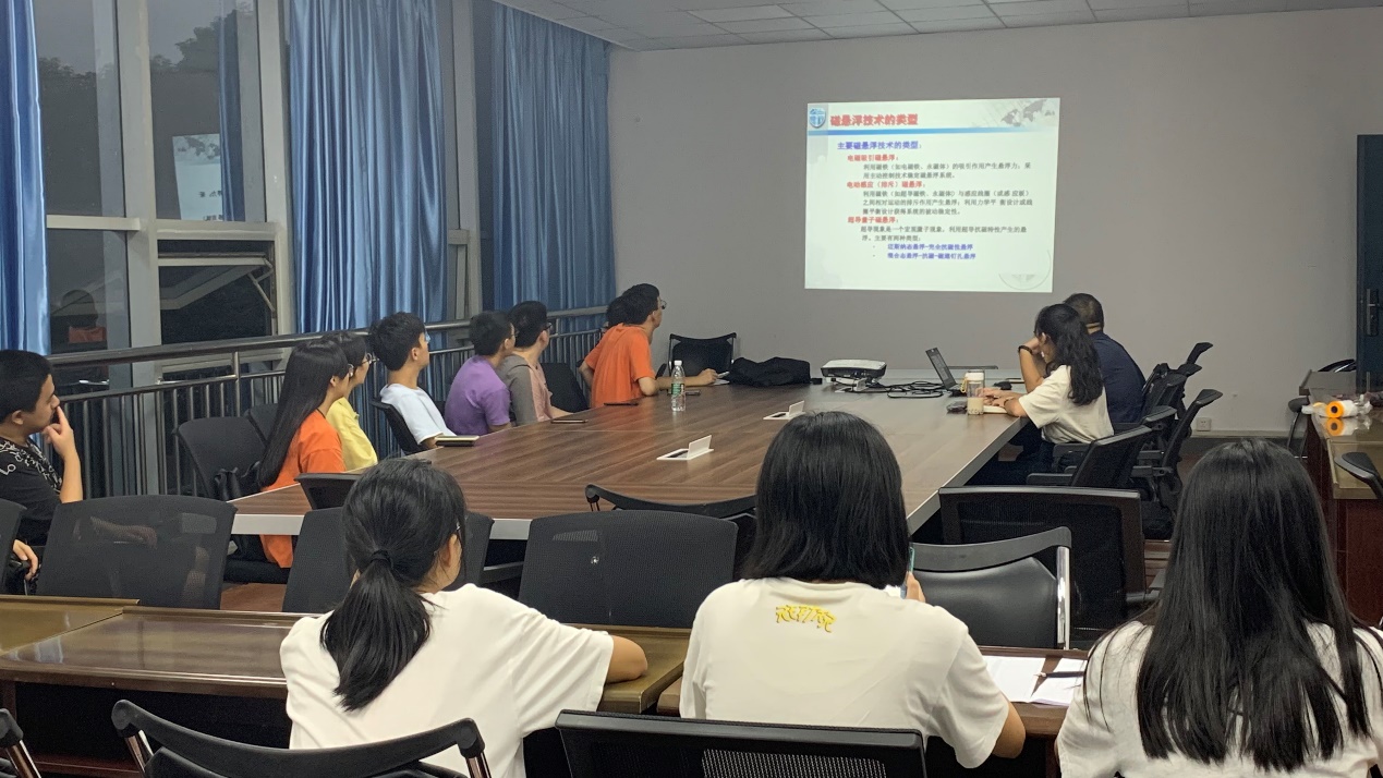 在最后的交流讨论阶段,王刚老师和同学们进行了良好的互动,关于目前的磁悬浮列车技术和大家作了深入讨论。从简单的科普到具体的结构、相关公式的推导,王刚老师都尽量以最简单的方式向同学们传达超导磁悬浮列车的相关技术知识。同时,王刚老师还教导同学们要多思考,把所学的知识和实际应用相结合,与新技术接轨。