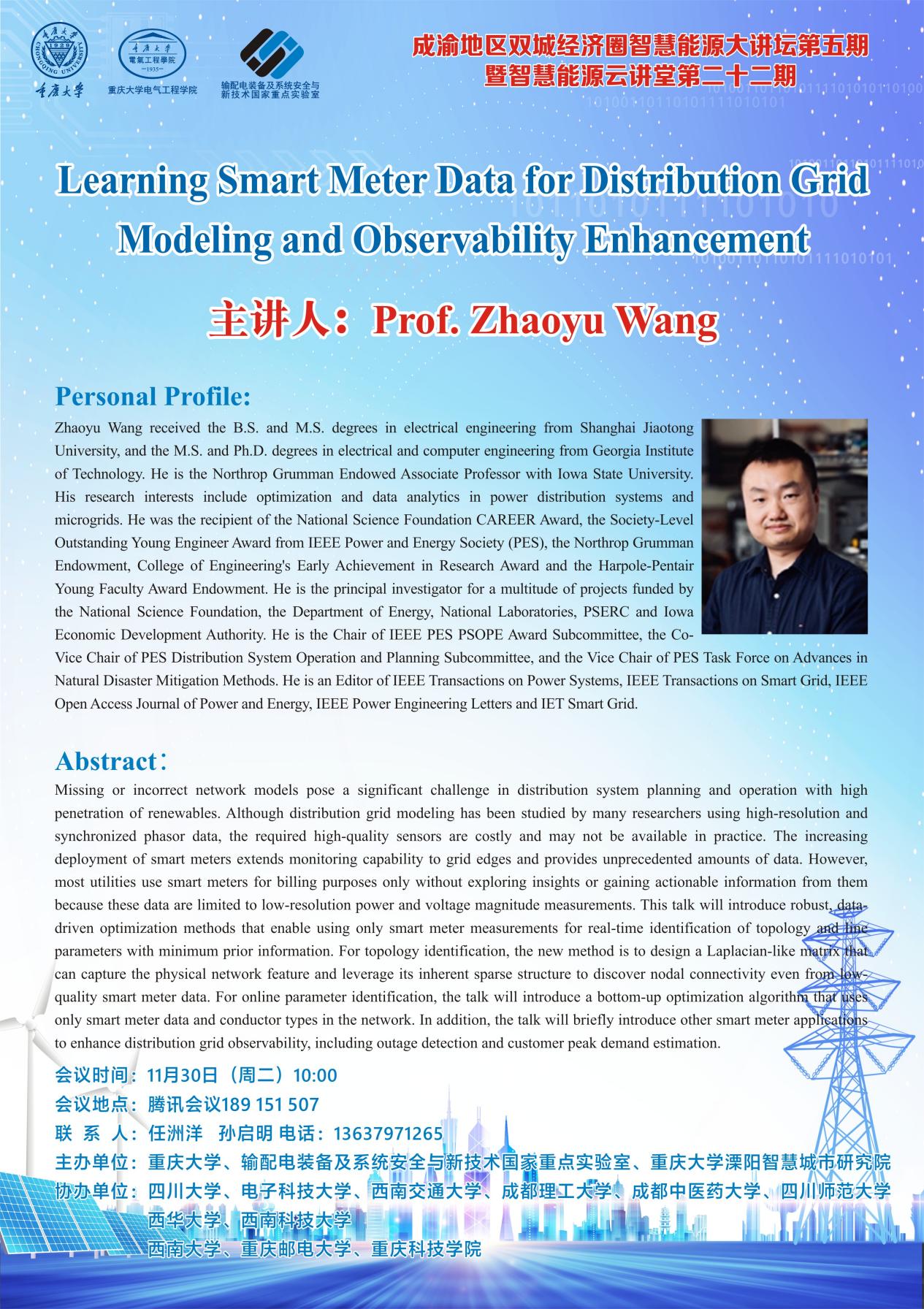 报告主题:Learning Smart Meter Data for Distribution Grid Modeling and Observability Enhancement