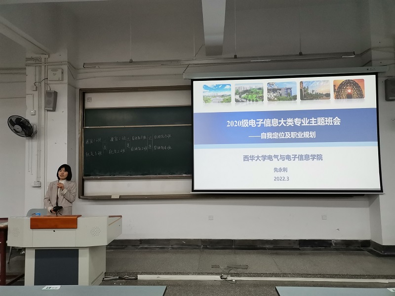 3月23日,电气与电子信息学院在6B-108召开2020级电子信息类和自动化类专业职业规划指导会。会议由2020级通信专业辅导员李婉主持进行,通信工程班导师先永利、黄永茂主讲,2020级通信工程、自动化和轨道交通信号与控制专业全体同学与会。