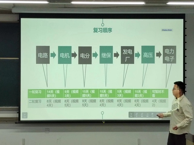 会上,杨镜霏同学从为什么要考国网、如何复习安排、报名事项、Q&A四个方面进行了详细的阐述,并根据自身经历分享了相关经验。在谈论复习时,杨镜霏同学强调复习重点应在逻辑运算与记忆科目之上,并详细介绍了自己的复习方法:重基础多看书,多做题懂考点。他指出:“国家电网考试难度并不大,考察的多为基础,但是考察面很广,需要搭建起合理的知识框架,希望大家能明白所学内容从何而来,用在何处。”
