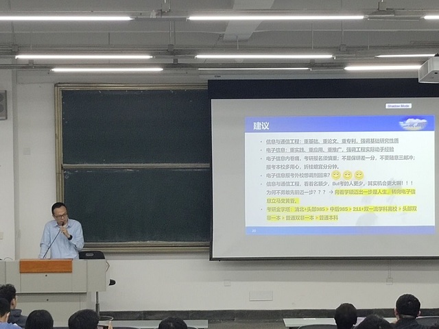413日中午,电气与电子信息学院在6B208举办2019级电子信息类就业和考研指导讲座。信息工程系主任郭奕老师主讲,2019级电子信息类全体同学到场参与。