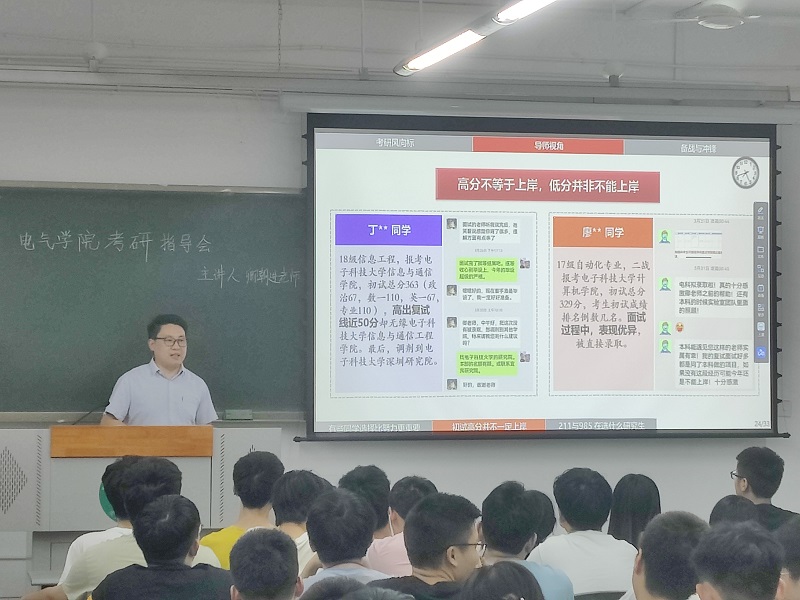 59日晚,电气与电子信息学院在6C226召开考研专业指导会。电气学院卿朝进教授担任主讲,从考研风向、导师视角和学院考研历史经纬度等多方展开详细阐述。2019级和2020级信息工程、通信工程及自动化等三个专业有考研计划的同学到场聆听。