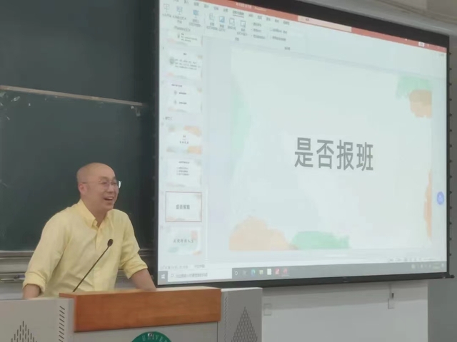 辅导员叶凯依次介绍分享人后,从报考人数、考研形势、最新考研情况向同学们做了详细分析。希望广大考研学子明确考研初心,不为逃避就业和随大流而“被考研”。
