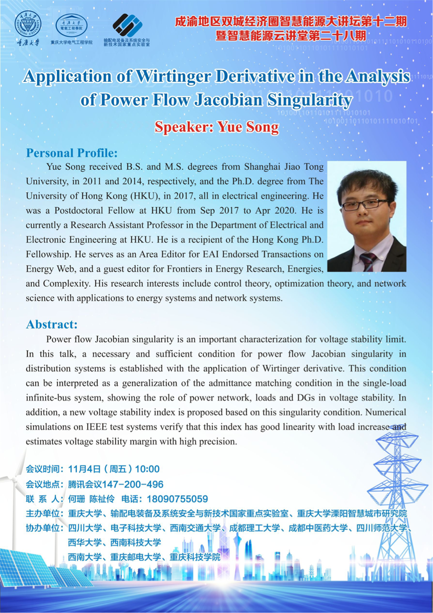 报告主题:Application of Wirtinger Derivative in the Analysis of Power Flow Jacobian Singularity