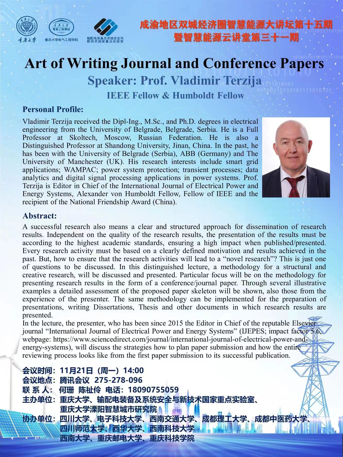 电气与电子信息学院学术报告——Art of Writing Journal and Conference Papers