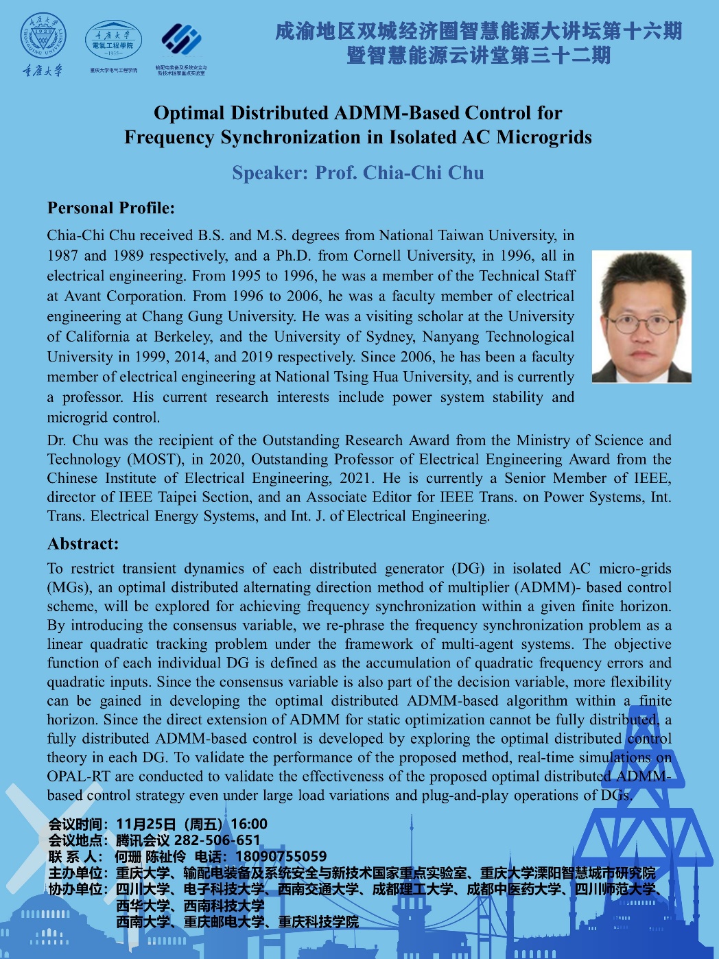 Dr. Chu was the recipient of the Outstanding Research Award from the Ministry of Science and Technology (MOST), in 2020, Outstanding Professor of Electrical Engineering Award from the Chinese Institute of Electrical Engineering, 2021. He is currently a Senior Member of IEEE, director of IEEE Taipei Section, and an Associate Editor for IEEE Trans. On Power Systems, Int. Trans. Electrical Energy Systems, and Int. J. of Electrical Engineering.