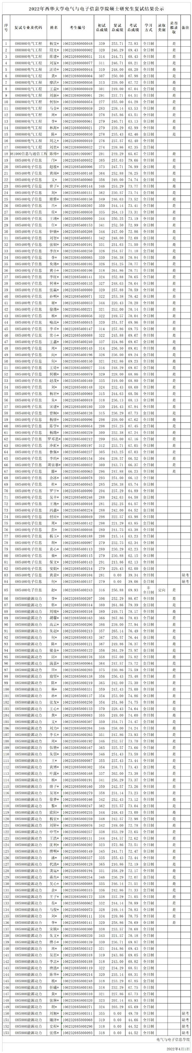 2022年3044永利集团硕士研究生一志愿复试结果公示