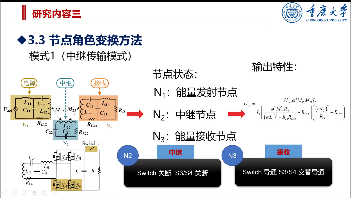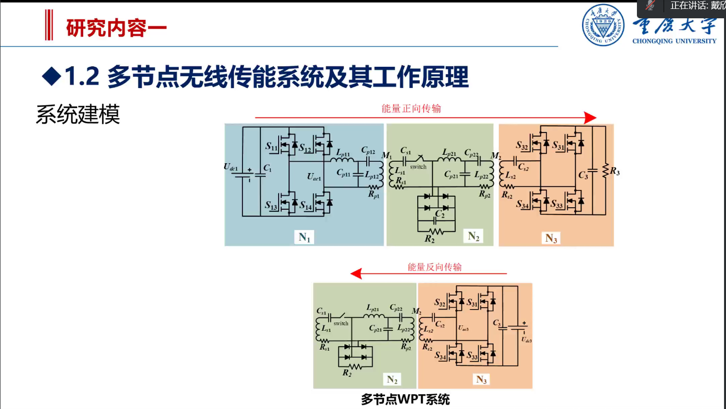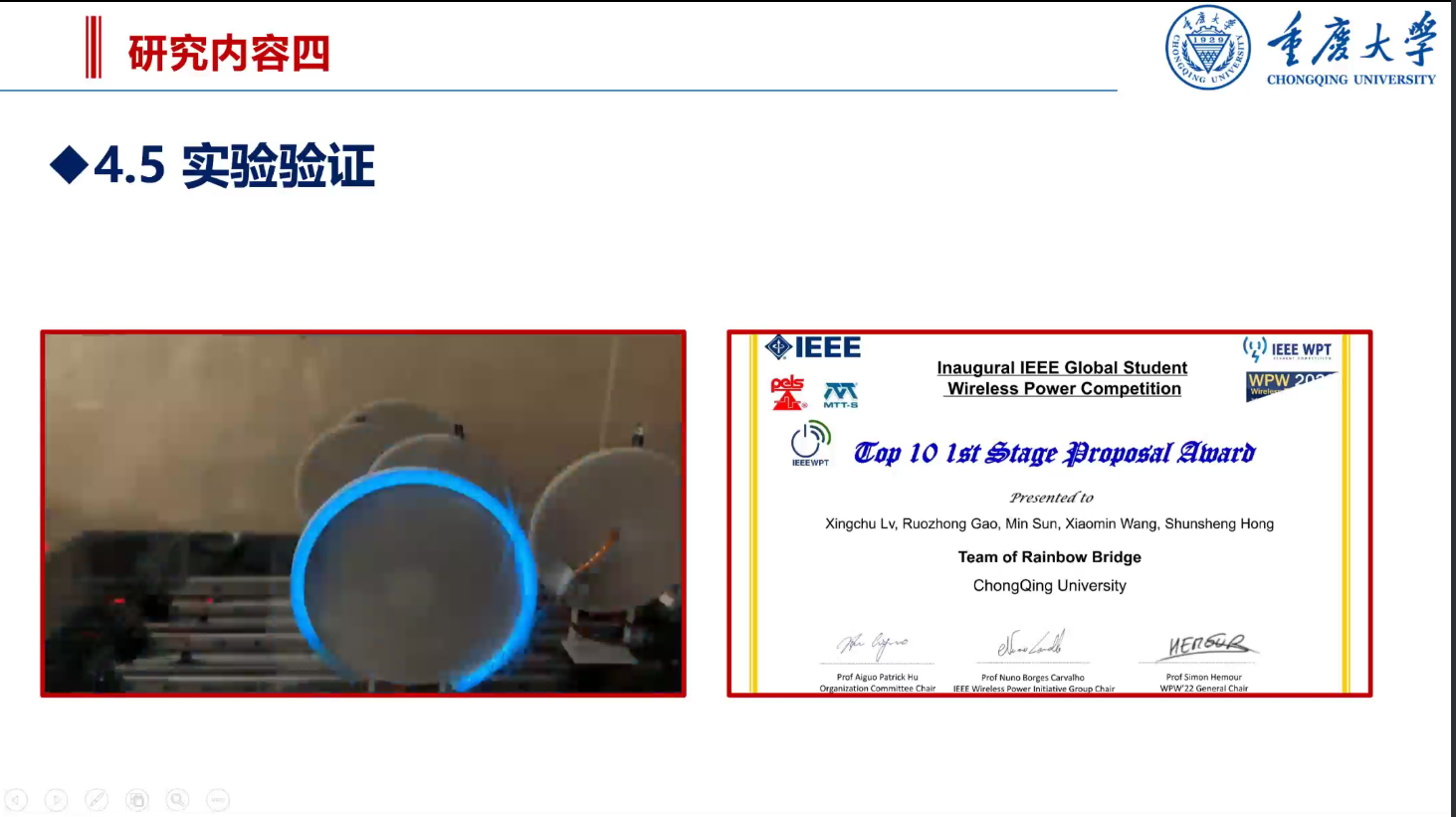 戴欣教授首先以移动设备及电动运载工具的智能化和无人化发展趋势为背景引入无线电能传输技术,并讲述了该技术未来的应用场景以及多节点WPT系统面临的挑战;阐述了针对解决多节点WPT系统中节点角色切换方法以及传能路径优化问题的研究内容,包括:具有多节点并行输出能力的无线传能模式、基于节点反向能量注入的增强式无线传能模式、基于拓扑切换的节点角色动态切换方法等,并为大家展示了针对不同研究内容时的实验验证方法和数据。由于该技术在国内目前处于探索阶段,戴欣教授也号召大家能够积极参与该方向的研究。