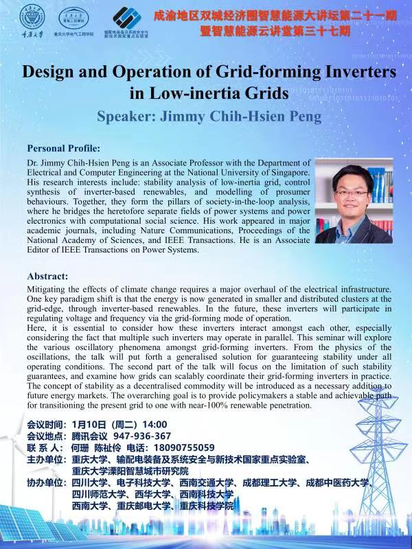 报告主题:Design and Operation of Grid-forming Inverters in Low-inertia Grids