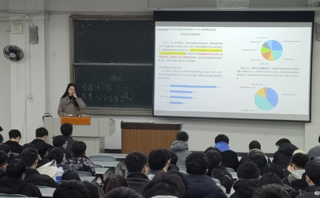 会上,叶露老师主要就“回首寒假”、“新学期提醒”、“学习资源推荐”三个方面展开分析报告,对2022级研究生进行的寒假及返校思想动态问卷调查的分析指出:超三分之一的同学认为自己的寒假充实而有意义;大部分同学做出了对新学期的规划,但对自己的就业方向较为迷茫、就业信心不足,叶露老师表达了对同学们要树立信心和良好就业观念的期望,学院层面也将开展就业培训,多角度开展线上线下讲座。