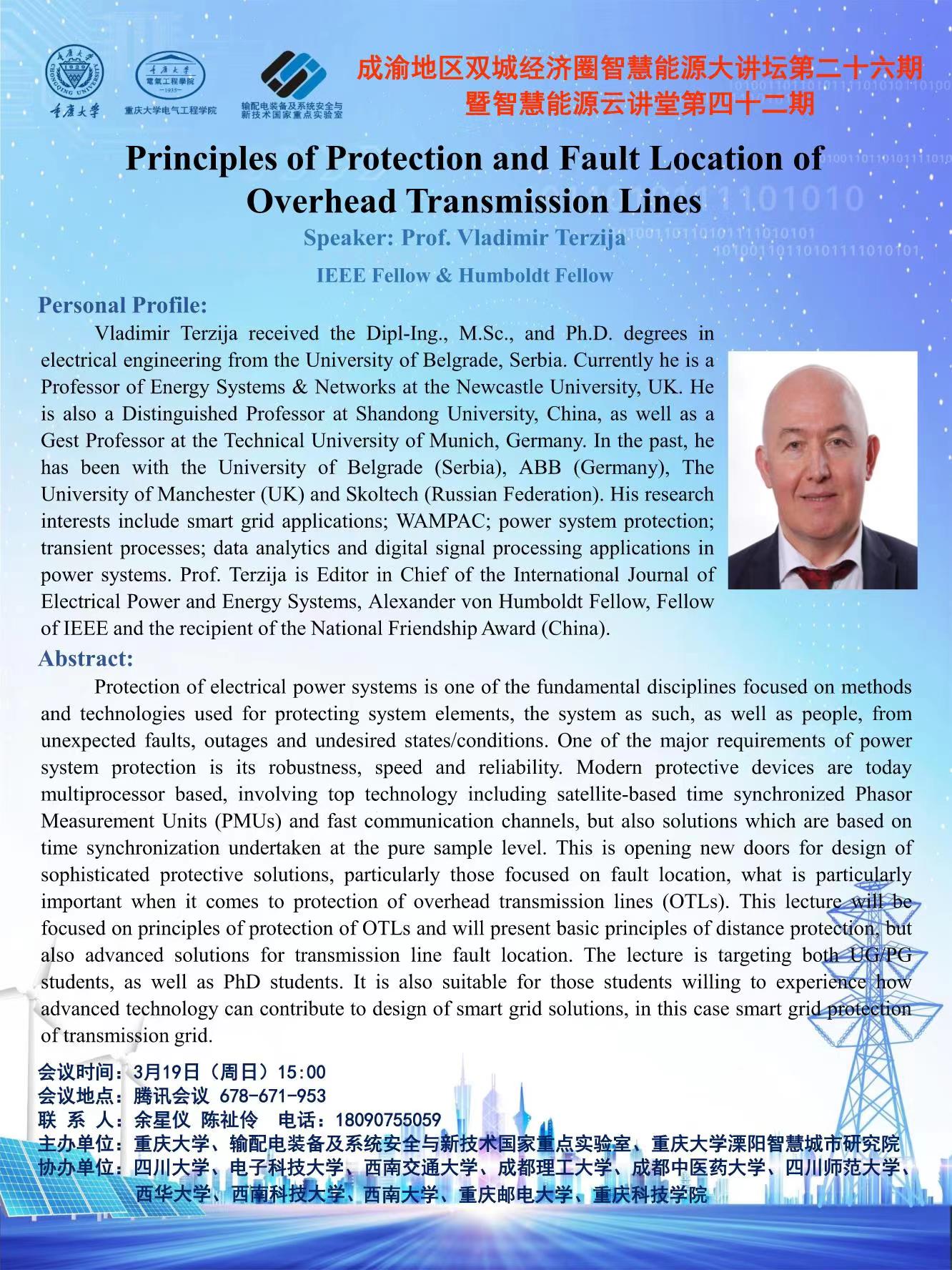 电气与电子信息学院学术报告——Principles of Protection and Fault Location of Overhead Transmission Lines