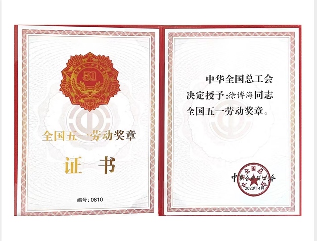 徐博海获全国五一劳动奖章