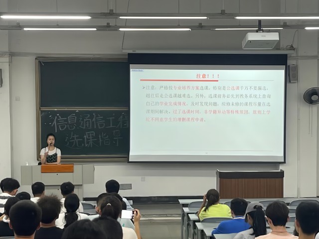 515-17日中午,电气与电子信息学院分别在6B3086B101面向2020-2022三个年级的学生召开选课指导会。电气与电子信息学院各专业系主任担任主讲,学院2020-2022级全体同学参加会议。