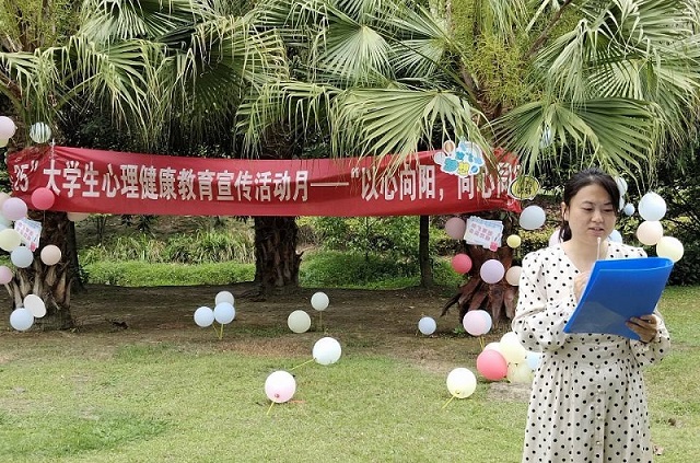 团委 学生会主席李春莹作为代表进行发言。她表示,希望同学们不仅仅要在这一天“爱自己”,更要在往后的每一天里关注自己的心理健康和心灵成长,提高自身心理素质,进而爱别人、爱社会。